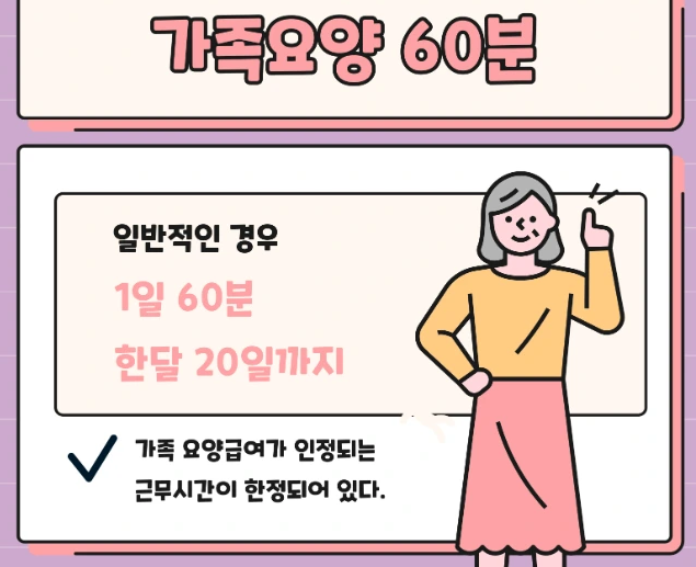 60분 서비스: 하루 60분씩 가족요양보호사가 돌봄을 제공하는 서비스입니다. 한 달에 최대 20일까지 제공될 수 있습니다.