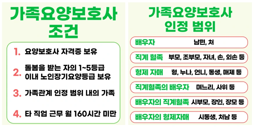 1) 요양보호사 자격증을 보유한 가족이어야 합니다.
