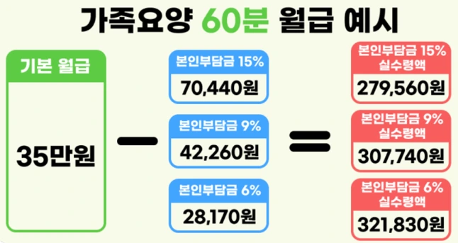 급여 금액은 각 요양센터나 지역의 기준에 따라 조금씩 다를 수 있으므로, 가족케어 급여를 신청하기 전에 정확한 금액을 확인하는 것이 좋습니다.