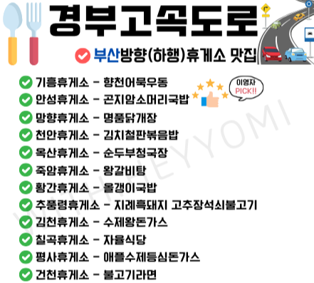 경부고속도로 맛집 리스트: 놓치지 말아야 할 필수 코스