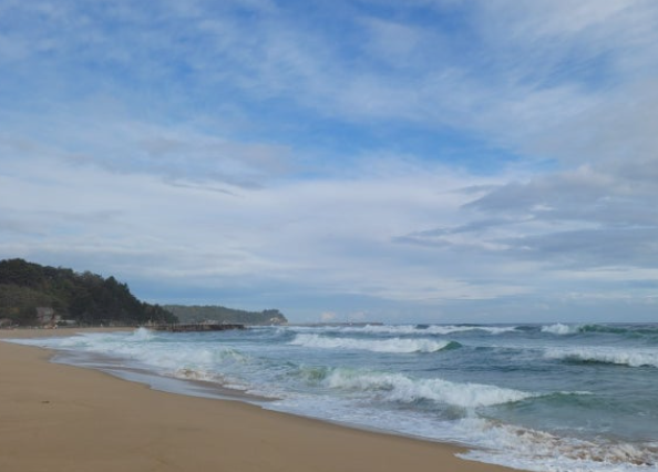 사람이 많지 않아 조용한 해변 분위기를 즐기고 싶다면 이곳이 제격입니다. 바다와 소나무 숲의 조합은 여유롭고 편안한 휴식을 선사해요.