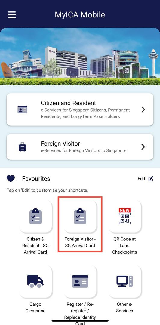 2) 앱 화면에서 'Foreign Visitor - SG Arrival Card'를 클릭합니다.
