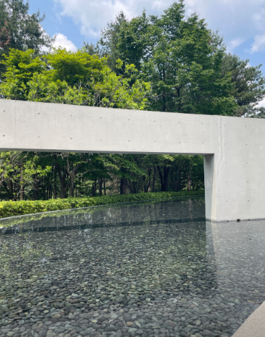 뮤지엄산을 걷다 보면 회색 콘크리트 건물과 싱그러운 숲, 잔잔한 물길이 함께 어우러져 하나의 거대한 작품처럼 느껴집니다. 미술작품을 ‘보는’ 데 그치지 않고, ‘걸으며 느끼는’ 경험을 선사하죠.