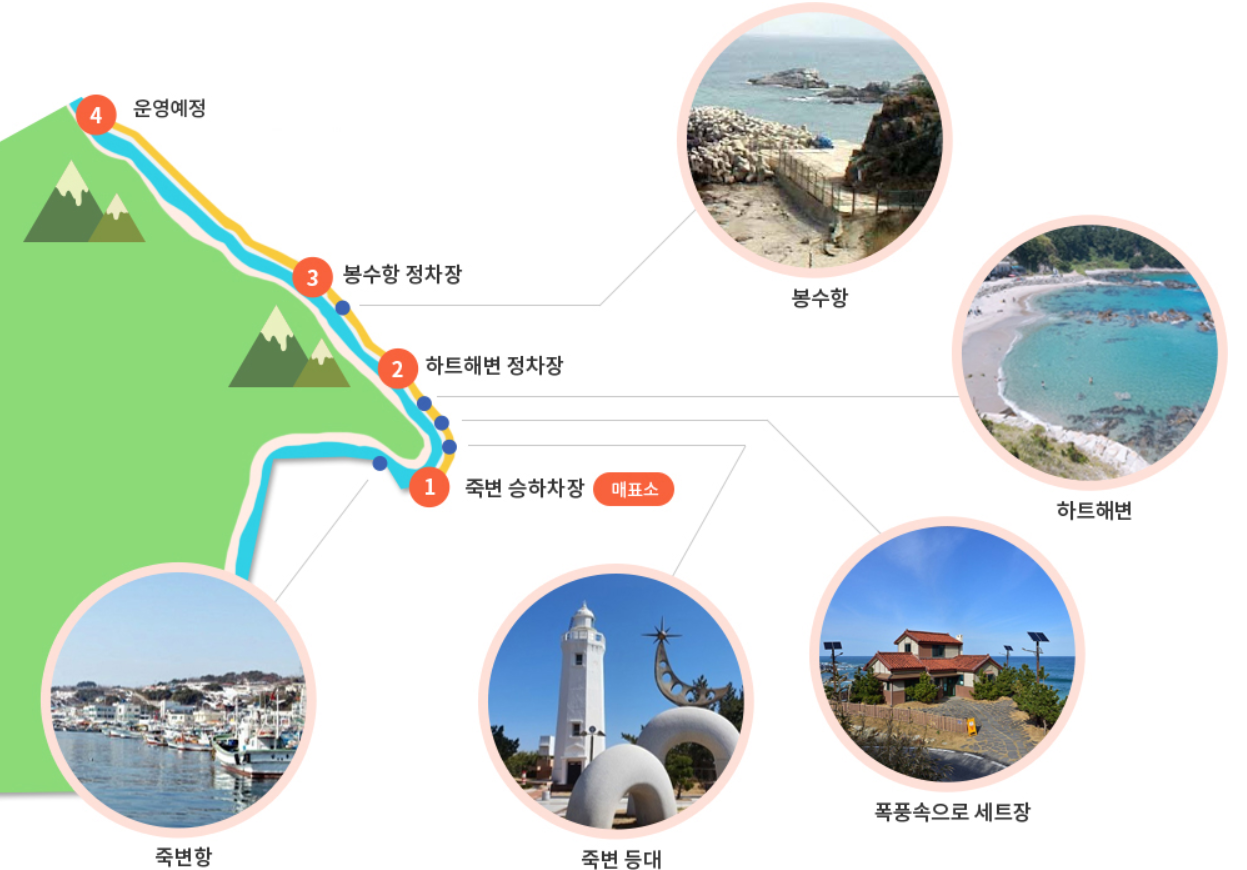 구간: 죽변 승하차장 → 봉수항 정차장 → 죽변 승하차장