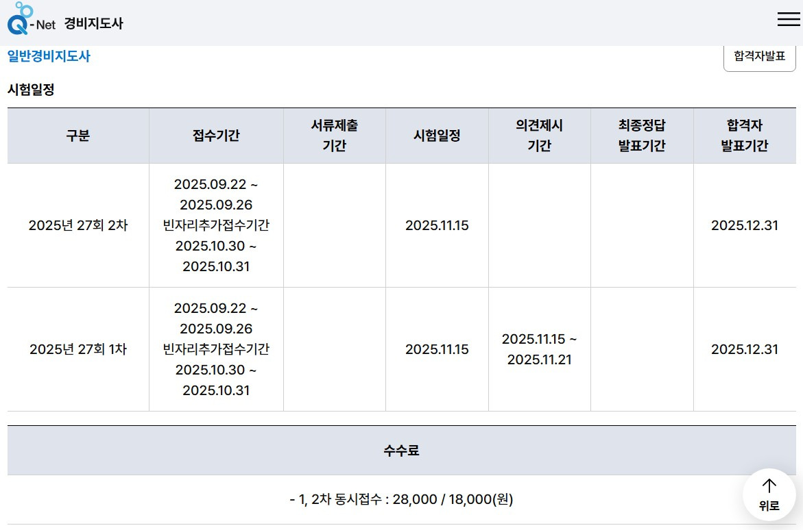 경비지도사 시험은 매년 한 번 진행되며, 2025년에는 아래와 같은 일정으로 진행될 예정입니다: