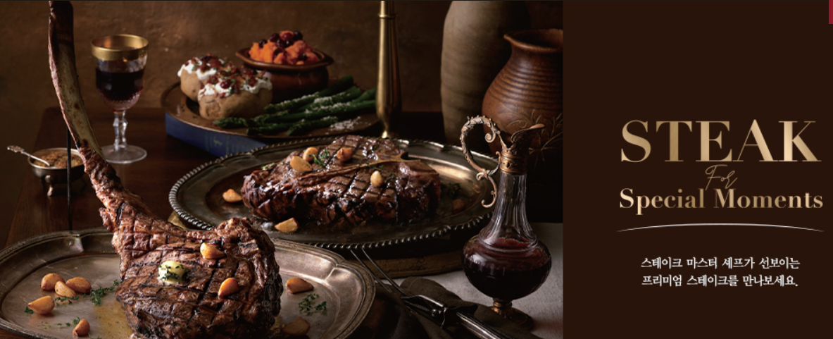 샐러드바 1인 무료 쿠폰, 특정 요일 스테이크 할인, 카카오톡 플러스친구 쿠폰