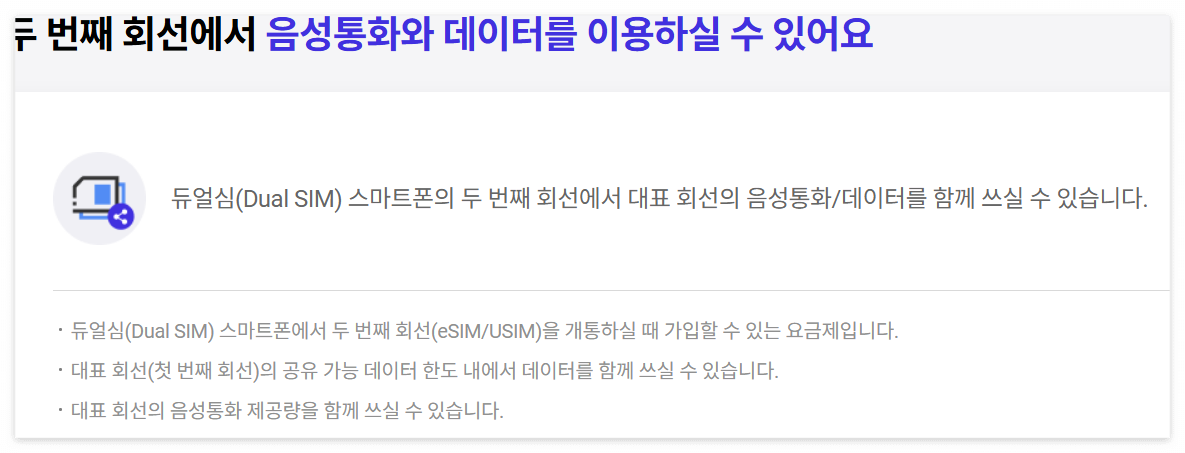 가입 조건의 제한: 듀얼SIM 스마트폰과 5G/LTE 요금제 가입자가 필요합니다.