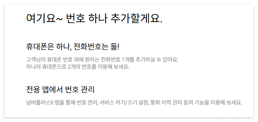 저렴한 요금: 월 3,850원으로 부담 없이 추가 번호를 사용할 수 있습니다.